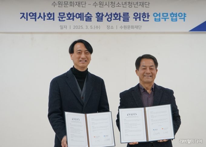 [리버럴미디어=공소리 기자] 수원문화재단은 5일, 수원시 청소년청년재단(이사장 이병규)과 업무협약(MOU)을 체결했다.