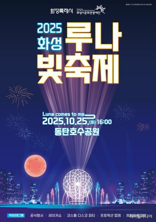 [리버럴미디어=공소리 기자] (재)화성시문화관광재단은 화성시 대표 명소인 동탄호수공원과 루나쇼를 연계한 '2025 화성 루나 빛 축제'를 오는 10월 25일 토요일 16시에 개최한다.