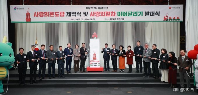 [리버럴미디어=공소리 기자] 용인특례시는 3일 시청 컨벤션홀에서 ‘희망 2026나눔캠페인 사랑의 온도탑제막식 및 사랑의 열차 이어달리기 발대식’을 개최했다.