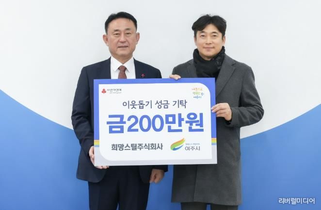[리버럴미디어=공소리 기자] 지난 19일 여주시 삼교동 소재 희망스틸주식회사 김영기 대표는 여주시를 방문하여 이웃돕기 성금 200만원을 기탁했다.