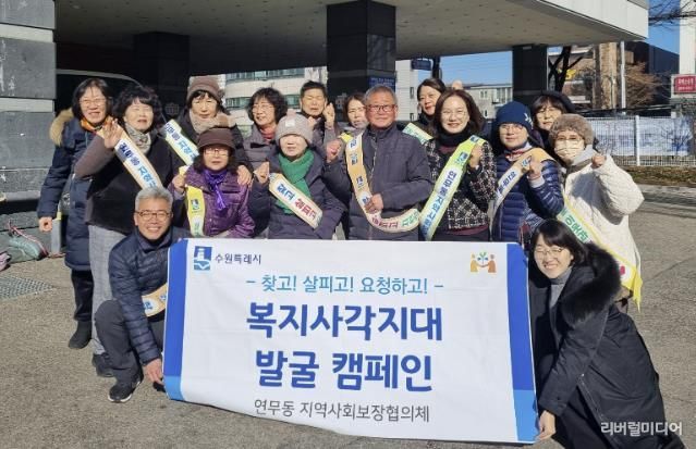 [리버럴미디어=공소리 기자] 수원시 장안구 연무동 지역사회보장협의체는 지난 21일 연무시장 거리에서 '복지사각지대 발굴 캠페인'을 진행했다.