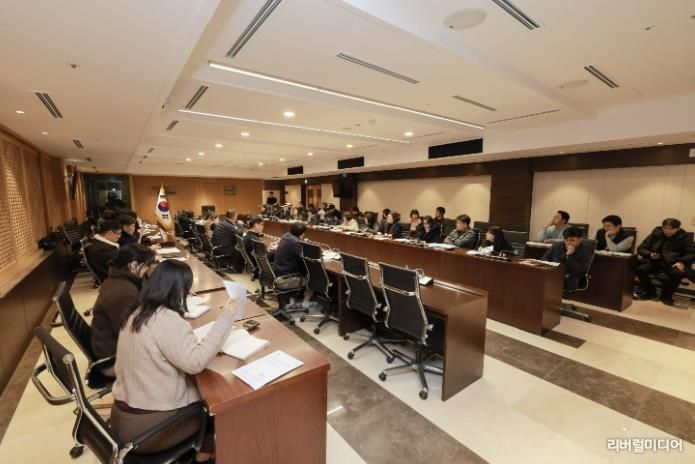 [리버럴미디어=공소리 기자] 군포시는 1월 28일(수) 군포시청 본관 3층 중회의실에서 전 부서 주무팀장이 참석한 가운데 동 제설 지원체계 개선 및 비상근무 해제 기준 마련을 위한 회의를 개최했다.