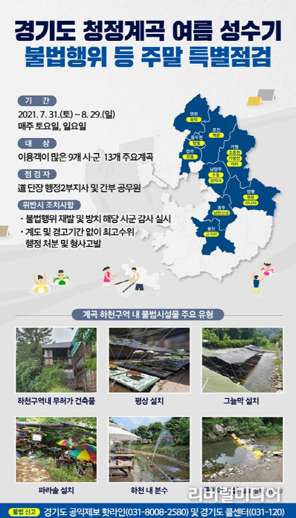 [리버럴미디어=공소리 기자] 최근 여름 휴가철을 맞아 경기도는 특별 점검반 가동, 무관용 대응 등 불법행위 완전 근절을 위한 고강도 대응책을 추진한다.