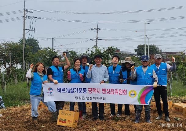 [리버럴미디어=공소리 기자] 평택시 바르게살기운동 팽성읍 위원회는 지난달 30일 팽성읍 남산리 77-14 텃밭에서 ‘이웃사랑 고구마 수확 행사’를 진행했다.