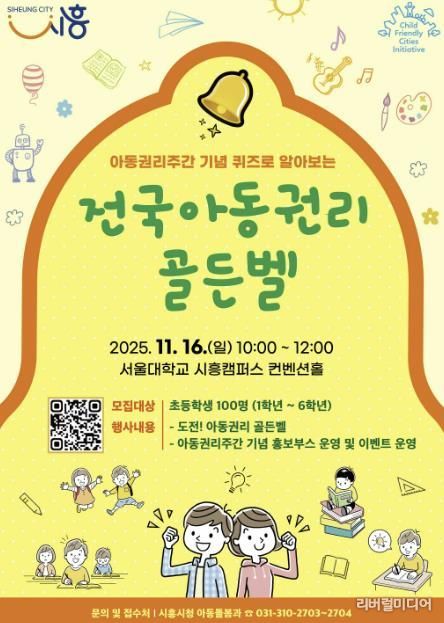 [리버럴미디어=공소리 기자] 시흥시는 오는 11월 16일 오전 10시, 서울대학교 시흥캠퍼스 컨벤션홀에서 열리는 ‘퀴즈로 알아보는 전국 아동권리 골든벨’에 참가할 초등학생을 10월 31일까지 모집한다.