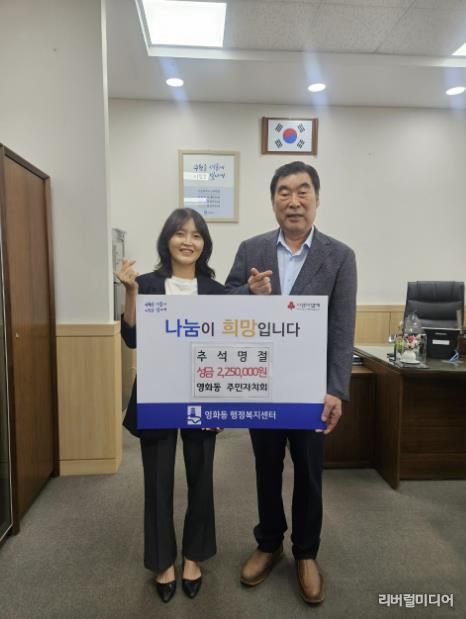 [리버럴미디어=공소리 기자] 수원시 장안구 영화동 주민자치회는 지난 1일, 추석 명절을 앞두고 관내 도움이 필요한 이웃들을 위해 성금 225만원을 기부했다고 밝혔다.