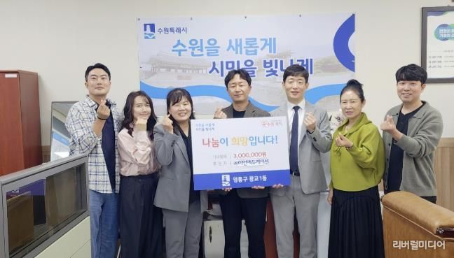 [리버럴미디어=공소리 기자] 수원시 영통구 광교1동은 ㈜이언에듀케이션으로부터 이웃돕기 성금 300만원을 기탁받았다고 밝혔다.