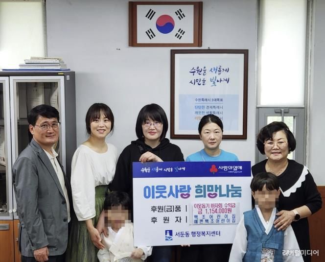 [리버럴미디어=공소리 기자] 수원시 권선구 서둔동에 위치한 백조어린이집 및 예쁜백조어린이집은 지난 2일, 지역사회 내 어려운 이웃과 소외계층을 위해 어린이집 체험활동 수익금 1,154,000원을 서둔동행정복지센터에 기부했다.