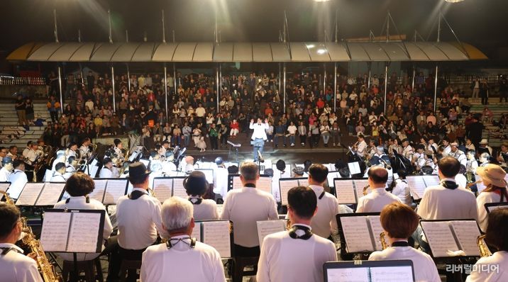 이날은 뉴비전앙상블, 거북이앙상블, 하모니앙상블 등 개별 동아리들이 색소폰 독주와 3중주, 4중주 등 다양한 구성을 통해 각자의 색깔을 살린 무대를 선보였다. 마지막 피날레는 ‘평행선’, ‘머나먼 고향’, ‘만남’ 등 친숙한 곡들이 100인 색소폰 하모니로 울려 퍼지며 시민들의 큰 호응을 받았다.