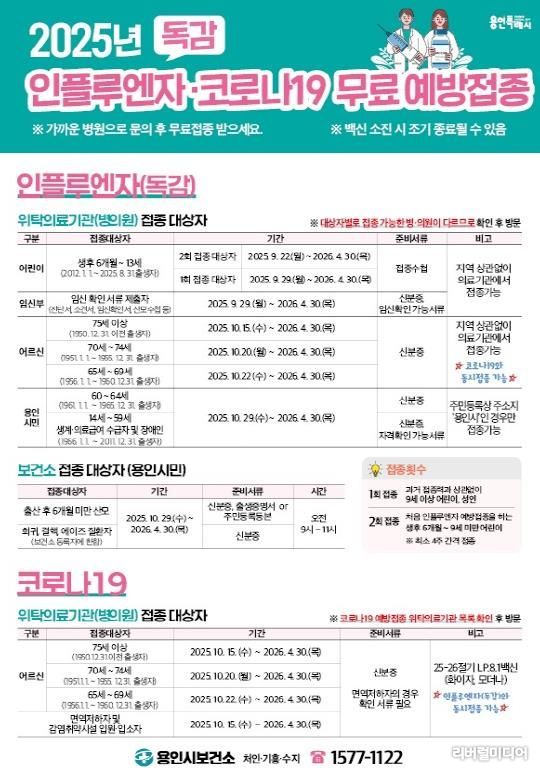 [리버럴미디어=공소리 기자] 용인특례시는 10월 15일부터 내년 4월 30일까지 지역 내 290개 위탁의료기관에서 코로나19 무료 예방접종을 시작한다고 13일 밝혔다.