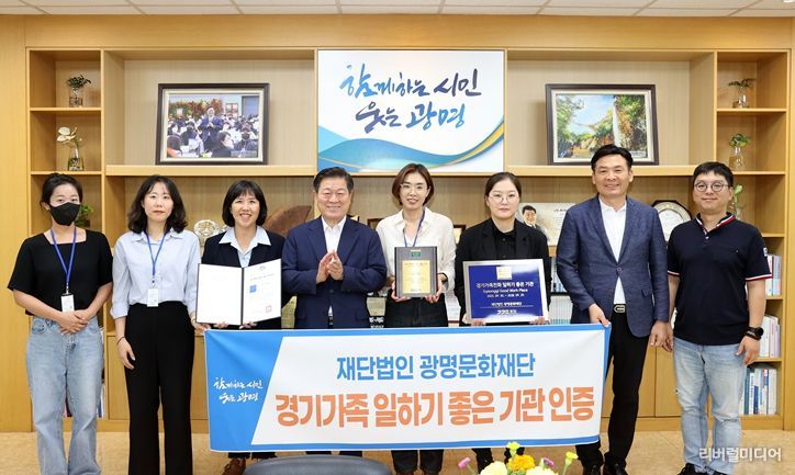 [리버럴미디어=공소리 기자] (재)광명문화재단은 가족친화적인 조직문화 조성과 복지 제도 운영의 우수성을 인정받아, 경기도로부터 ‘2025년 가족친화 일하기 좋은 기업’ 인증을 받았다.