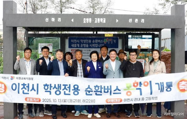 [리버럴미디어=공소리 기자] 경기도이천교육지원청은 10월 13일, 이천시와 함께 이천 관내 중·고등학생들의 안전한 통학을 지원하는 학생통학 순환버스 ‘통학이’ 개통식을 열고 시범운행을 시작했다.