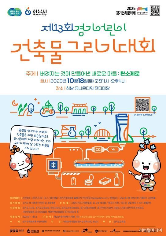 건축에 관심 있는 어린이들이 참가하는 ‘어린이건축물그리기대회’도 10월 18일 유니온타워 야외 잔디마당에서 진행된다. 이번 대회의 주제는 ‘버려지는 것이 만들어낸 새로운 마을 : 탄소제로’로, 경기도 내 미취학 아동과 초등학생이 참여할 수 있다. 대회를 통해 아이들은 자신만의 상상력을 발휘해 지속 가능한 미래의 건축물을 그리며, 건축에 대한 흥미와 이해를 높일 수 있을 것이다.