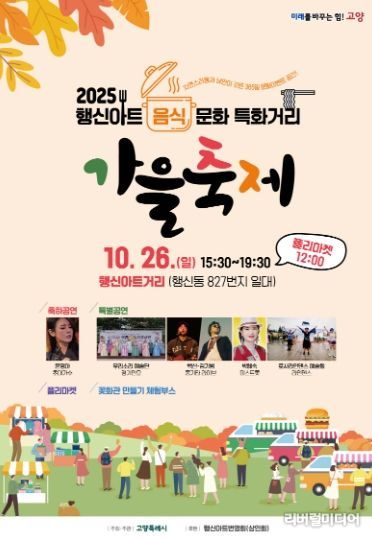 [리버럴미디어=공소리 기자] 고양특례시는 오는 26일 오후 3시 30분부터 오후 7시 30분까지 ‘행신아트 음식문화 특화거리 가을축제’를 행신아트거리 일대에서 개최한다고 밝혔다.