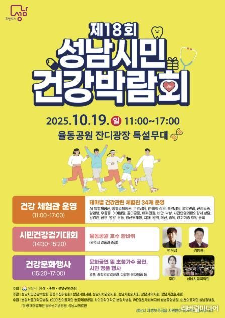 [리버럴미디어=공소리 기자] ‘제18회 성남시민 건강박람회’가 오는 10월 19일 오전 11시~오후 5시 율동공원 잔디광장에서 열린다.