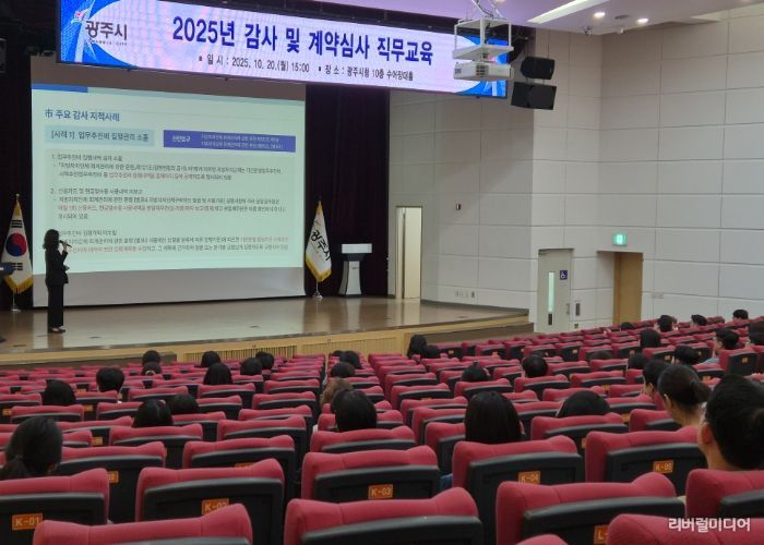 [리버럴미디어=공소리 기자] 광주시는 20일 시청 수어장대홀에서 전 직원을 대상으로 ‘2025년 감사 및 계약심사 직무교육’을 실시했다.