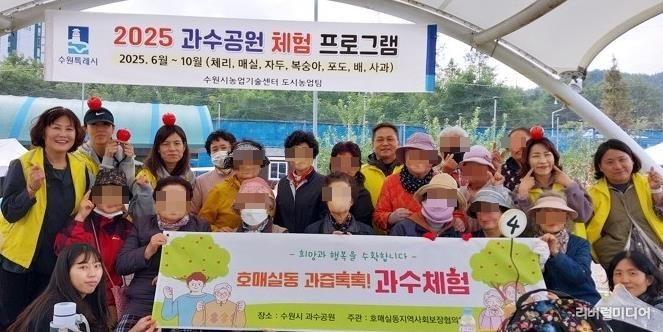 [리버럴미디어=공소리 기자] 수원시 권선구 호매실동 지역사회보장협의체는 지난 20일, 저소득 홀몸 어르신들을 모시고 과수 체험(사과 따기)에 나섰다. 이번 행사는 관내 홀몸 어르신들의 우울감 등을 예방하고 사회적 관계망을 만들기 위해 진행됐다.