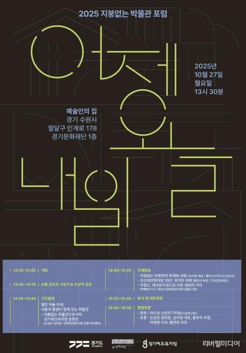 [리버럴미디어=공소리 기자] 경기도와 경기문화재단은 일상 곳곳의 발자취를 ‘박물관’으로 만드는 지붕없는 박물관(경기에코뮤지엄)사업의 '2025 지붕없는 박물관 포럼_어제·오늘·내일'을 10월 27일 오후 1시 30분 경기문화재단 예술인의 집(수원)에서 개최한다.
