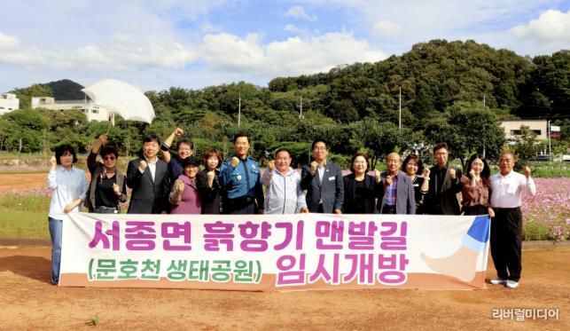 [리버럴미디어=공소리 기자] 양평군 서종면은 지난 17일 오후 1시, 서종면 문호리 968 일대 문호천 생태공원에서 ‘서종면 흙향기 맨발길’ 임시 운영을 기념하는 걷기 행사를 개최했다.