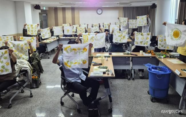 이번 교육은 직장인들의 환경 문제에 대한 이해를 높이고, 일상에서 실천할 수 있는 친환경 활동을 체험해 보는 데 목적을 두고 진행됐다. 천연염색에 대한 강의를 시작으로, 허브 스머지스틱 만들기, 보자기 염색 체험 등 다양한 실습 프로그램이 운영됐다.
