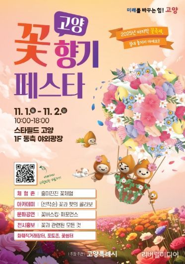 [리버럴미디어=공소리 기자] 고양특례시는 오는 11월 1일과 11월 2일, 오전 10시부터 오후 6시까지, 스타필드 고양 1층 동측 야외광장에서 2025년 마지막 꽃축제인 ‘고양 꽃향기 페스타’를 개최한다고 밝혔다.