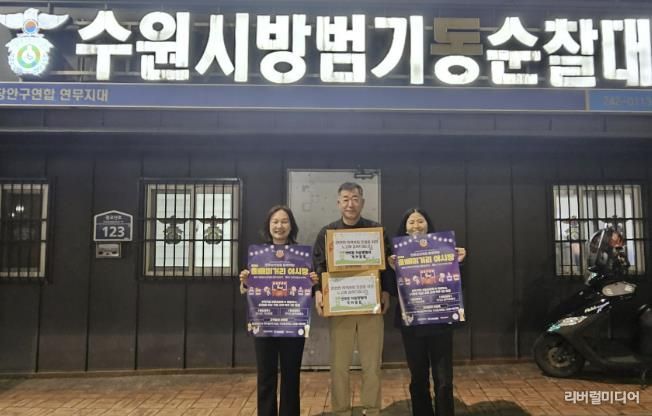 [리버럴미디어=공소리 기자] 수원시 장안구 연무동은 지난 28일 연무동 자율방범대 초소를 방문하여 대원들의 노고를 격려하고 봉사에 대한 감사의 마음을 담은 격려 물품을 전달했다.