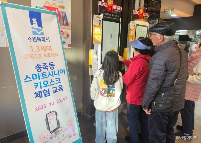 [리버럴미디어=공소리 기자] 수원시 장안구 송죽동 지역사회보장협의체는 지난 29일 맥도날드 북수원DT점에서 ‘스마트시니어 키오스크 체험’ 프로그램을 진행했다.