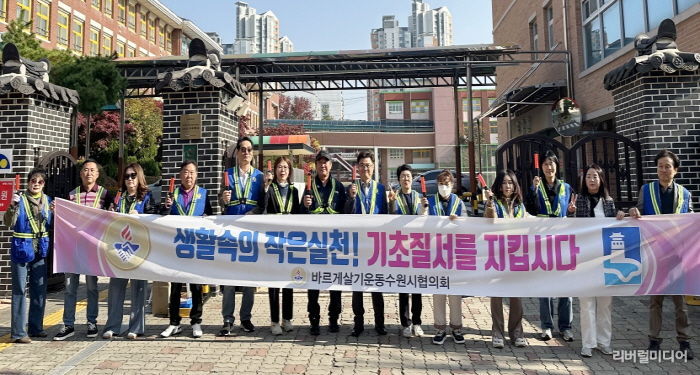 [리버럴미디어=공소리 기자] 수원시 영통구 바르게살기운동협의회는 지난 11월 7일, 매탄동 산남초등학교 앞에서 ‘기초질서 확립 캠페인’을 실시했다. 이는 일상 속에서 질서와 배려를 실천하는 시민 문화를 조성하고, 더불어 깨끗하고 안전한 생활환경을 만들어가기 위한 취지다.