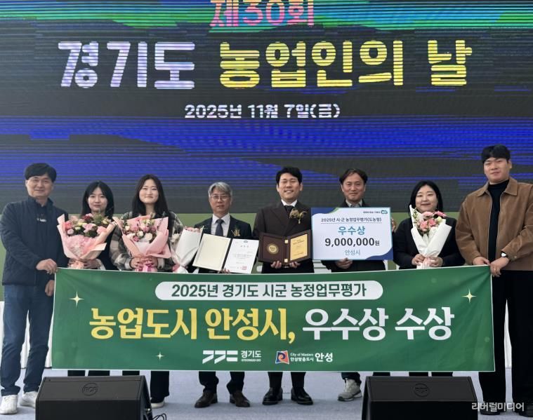 [리버럴미디어=공소리 기자] 안성시가 2025년 경기도 시·군 농정업무 평가에서 우수 기관으로 선정되어 ‘우수상’을 수상했다. 지난해 ‘장려상’을 받은데 이어 올해는 한 단계 도약한 성과를 거두며, 지역 농정 추진 역량을 다시 한번 입증했다.