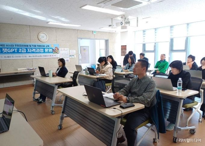 [리버럴미디어=공소리 기자] 이천시 관고동 주민자치회는 전국민 인공지능(AI) 시대를 준비하기 위해 직원, 학습센터 강사, 주민자치위원 등 14명을 대상으로 챗지피티(Chat GPT) 2급 자격 과정을 11월부터 매주 토요일 총 4회 운영한다고 밝혔다.