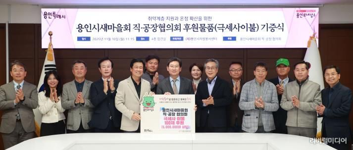 이상일 시장은 “용인특례시의 인구가 증가하면서 기초생활수급자 등 돌봐야 할 어려운 이웃들도 늘어나고 있는데 새마을 직ㆍ공장협의회가 지역 사회 소외계층을 위한 지원에 앞장서 주셔서 감사하다”며 “시장으로서 어려운 환경에 있는 시민들을 보살피고 지원하는 데 더욱 신경쓰겠다”고 했다.