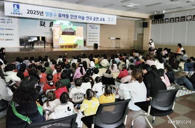 [리버럴미디어=공소리 기자] 수원시 영통구는 지난 10일, 영통구청 대회의실에서 관내 유아동를 대상으로 안전한 생활 습관을 형성하기 위한 ‘안전돼지 삼형제’ 인형극 교육을 성공적으로 진행했다고 밝혔다.