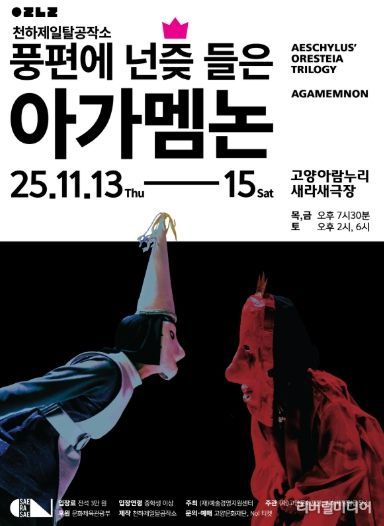 [리버럴미디어=공소리 기자] (재)고양문화재단은 오는 11월 13일부터 15일까지 3일간, 고양아람누리 새라새극장에서 천하제일탈공작소의 탈춤극 〈풍편에 넌즞 들은 아가멤논〉을 선보인다.