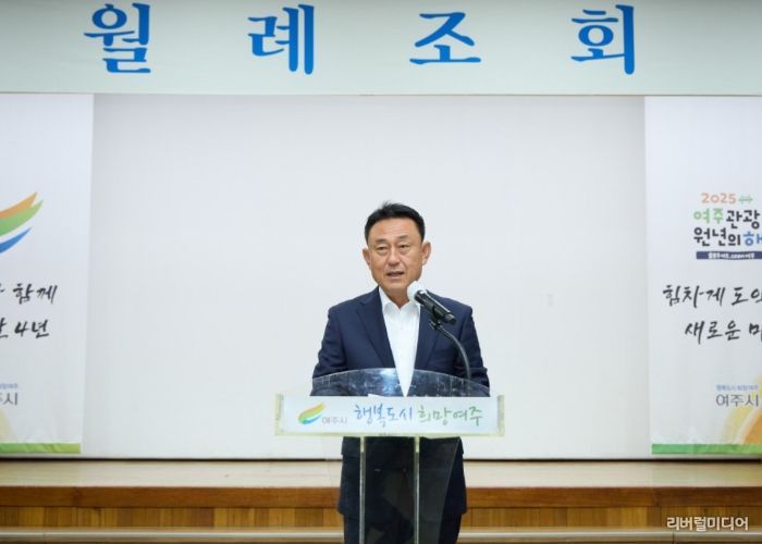 이날 월례조회는 강천섬 힐링축제 홍보 영상 시청 및 지역사회 발전에 헌신한 공무원과 시민 분들께 시상을 했고, 이에 이충우 시장은 수상자들에게 축하 인사를 전했고 성과를 창출한 공무원의 노력에 대해 감사 인사를 전하며 시민 중심의 행정을 위한 공직문화를 확산하는 계기가 됐다.
