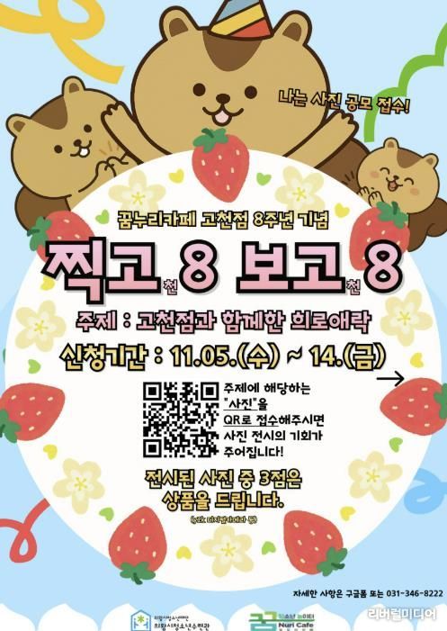 [리버럴미디어=공소리 기자] 의왕시청소년재단 산하 꿈누리카페 고천점이 개소 8주년을 맞아 추진 되는 청소년과 지역 주민이 함께하는 기념 프로그램‘찍고8, 보고8’의 참가자를 11월 14일까지 모집한다.