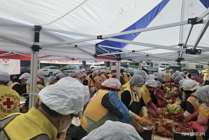 [리버럴미디어=공소리 기자] 대한적십자사 시흥시협의회는 지난 11월 13일 ‘사랑의 김장 담기’ 행사를 열고 지역 내 소외된 이웃들에게 온정을 전했다. 이번 행사에는 대한적십자사 시흥시협의회 봉사원 100여 명이 참여해 정성껏 김장김치를 담갔으며, 완성된 김치는 관내 저소득가정 등 약 300가구에 전달됐다.