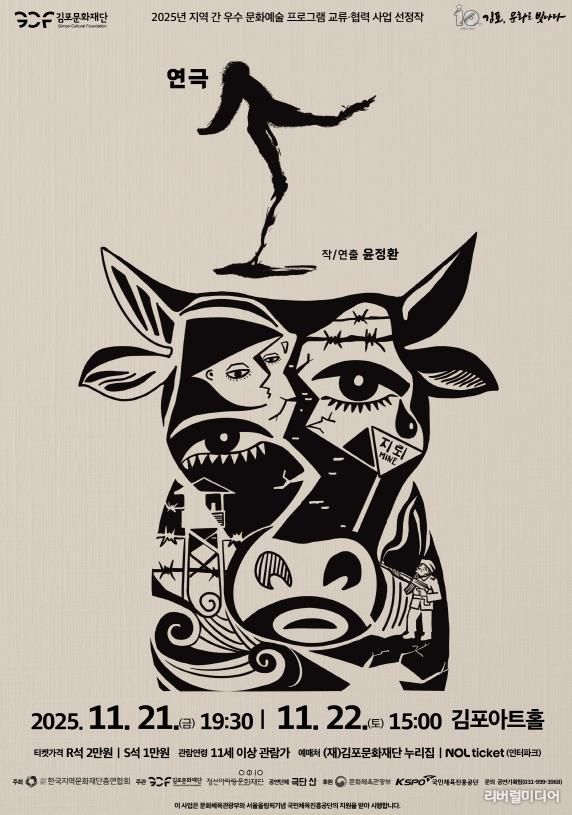 [리버럴미디어=공소리 기자] (재)김포문화재단은 오는 11월 21일부터 22일까지 이틀동안 김포아트홀에서 연극 '소' 공연을 개최한다고 밝혔다.