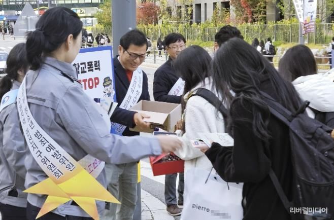 [리버럴미디어=공소리 기자] 법무부 청소년범죄예방위원 수원지역 권선지구위원회는 지난 11일, 수능을 앞두고 영신여자고등학교 하굣길에 수원권선경찰서 및 구 공무원 등 30여 명과 함께 학교폭력예방 합동 캠페인을 진행했다.
