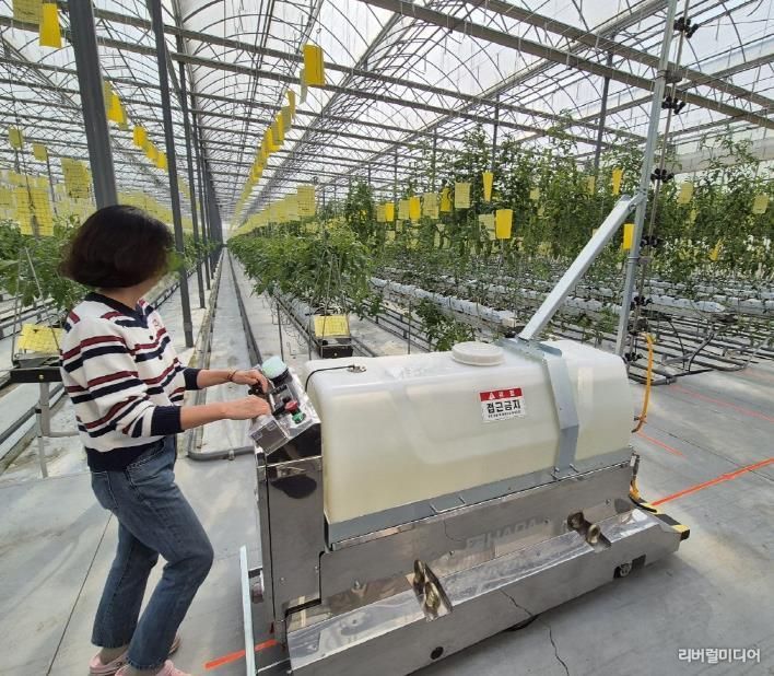 [리버럴미디어=공소리 기자] 평택시는 농업 현장에서 반복적이고 인체에 유해할 수 있는 방제 작업의 위험을 줄이기 위해 ‘중소형 스마트팜 방제 로봇 시범사업’을 고덕면 시설토마토 농가(규모 0.4㏊)를 대상으로 추진했다.