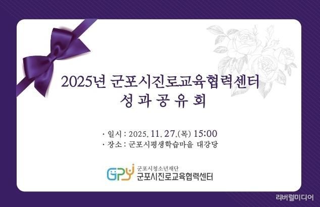 [리버럴미디어=공소리 기자] (재)군포시청소년재단 군포시진로교육협력센터는 오는 11월 27일 오후 3시, 군포시평생학습마을 대강당에서 ‘2025년 군포시진로교육협력센터 성과공유회’를 개최한다고 밝혔다.