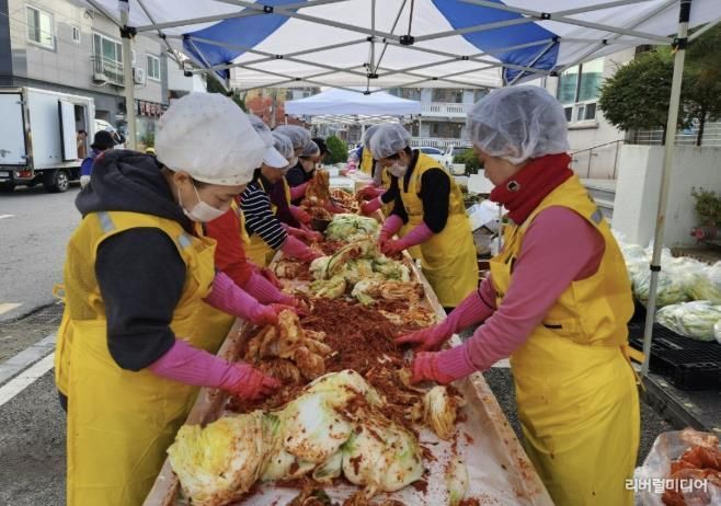 [리버럴미디어=공소리 기자] 수원 징검다리봉사단은 지난 23일 수원시 장안구 정자2동 행정복지센터 주차장에서 사랑의 김장 담그기 행사를 진행했다.