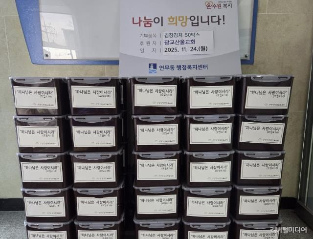 광교산울교회는 매년 꾸준한 나눔 활동을 이어오며 지역사회 돌봄에 앞장서고 있으며, 이번에 기부받은 김장김치는 관내 독거노인, 저소득 가구 등 취약계층에게 순차적으로 배부할 예정이다.