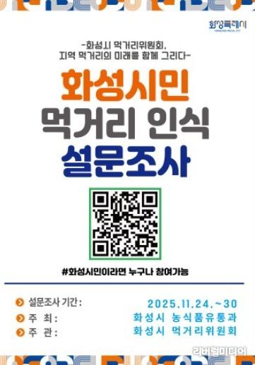 [리버럴미디어=공소리 기자] 화성특례시는 오는 30일까지 시민들이 체감하는 지역 먹거리 정책 수준과 관심 이슈를 파악하기 위해 화성시 먹거리위원회 주관 ‘화성시민 대상 먹거리 인식 설문조사’를 실시한다.