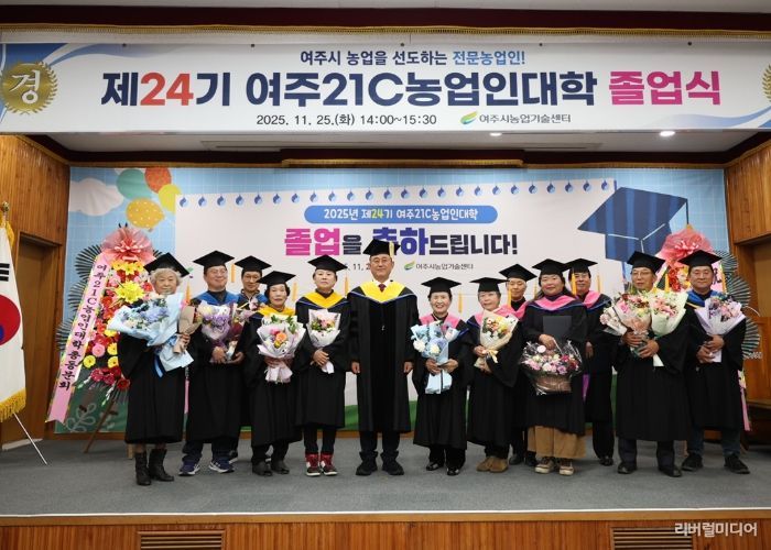 [리버럴미디어=공소리 기자] 여주시에서는 지난 11월 25일 농업기술센터 대회의실에서 제24기 여주21C농업인대학 졸업식을 성황리 개최했다. 이날 행사에는 이충우 시장을 비롯해 농업 관련 기관장 및 단체장, 농업인대학 총동문회 임원, 졸업생 가족 등 약 100명이 참석하여 졸업생들을 축하했다.