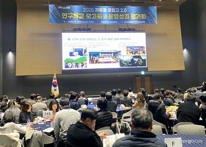 [리버럴미디어=공소리 기자] 경기도교육청이 3일 ‘2025 자율형 공립고 2.0 연구학교 보고회 및 운영성과 평가회’를 개최했다. 지역과 함께 만들어가는 자율형 공립고 2.0 연구 및 운영 사례 공유로 공교육의 경쟁력을 제고하고자 마련한 자리다.