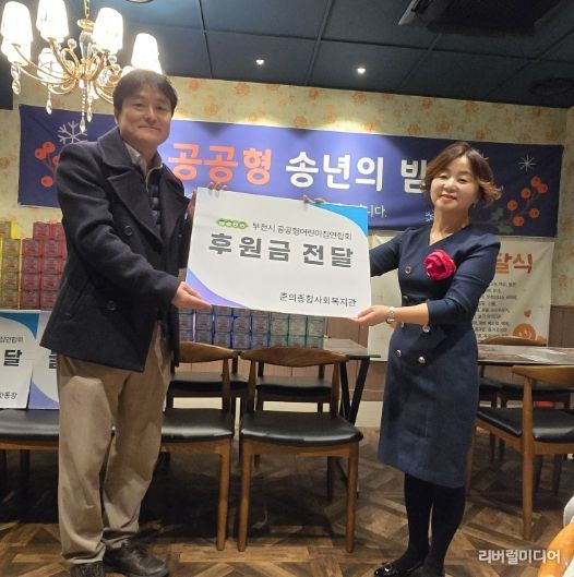 [리버럴미디어=공미소 기자] 부천시 공공형어린이집연합회가 지난 24일 개최된 공공형어린이집 송년의 밤 행사에서 춘의종합사회복지관에 이웃사랑 후원금을 전달하며 2년 연속 나눔 활동을 이어갔다.