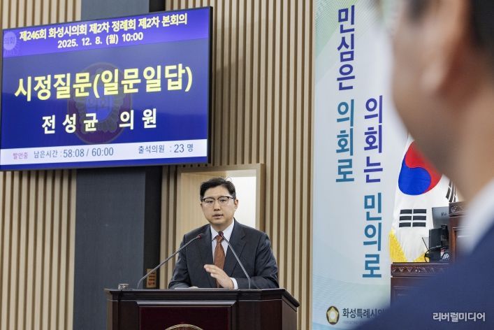[리버럴미디어=공소리 기자] 화성특례시의회 전성균 의원(개혁신당, 동탄4·5·6동)은 오늘 제264회 제2차 정례회 제2차 본회의 시정질문을 통해 화성시의 재정 악화, 공공기관 관리 부실, 조직 운영 혼선 등 시정 전반의 구조적 문제를 지적하며 “지금은 재정의 기초 체력을 회복하기 위해 결단해야 할 시점”이라고 강조했다.