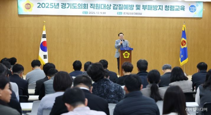 [리버럴미디어=공소리 기자] 경기도의회는 9일 오전 의회 대회의실에서 전 직원을 대상으로 ‘갑질예방 및 부패방지 청렴교육’을 실시했다.