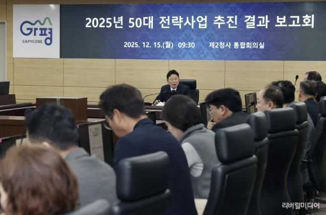 [리버럴미디어=공소리 기자] 가평군은 15일 ‘2025년 50대 전략사업 추진 결과 보고회’를 열고, 올해 추진한 주요 현안과 역점·공략사업의 성과를 종합적으로 점검했다.