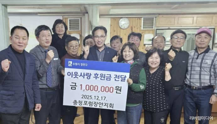 이일희 장안구청장은 “충청포럼 장안지회의 지속적인 관심과 후원에 감사드린다”며 “기부금은 지역사회 복지와 주민 지원을 위해 소중히 사용될 것”이라고 전했다.